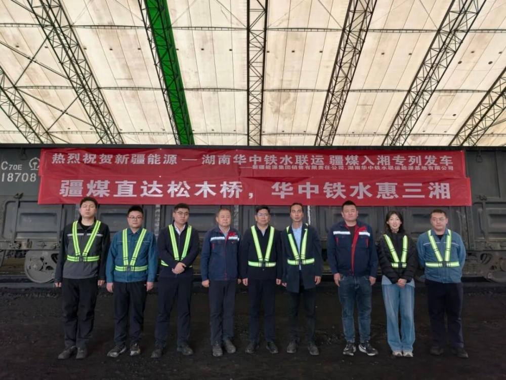 此次专列的顺利发出,是继今年3月鱼河站台开通运营后,湖南华中铁水联运能源基地有限公司的又一重要突破。为积极响应国家能源保供号召,破解湖南煤炭90%依赖外运、年均缺口达1.2亿吨的现状,该公司主动赴新疆哈密对接合作事宜,在湘疆两地政府的高度重视与大力支持下,经过前期深入调研、多轮沟通协商,最终与新疆能源(集团)有限责任公司达成共识,成功打通新疆矿区至岳阳松木桥站的直达运输通道。